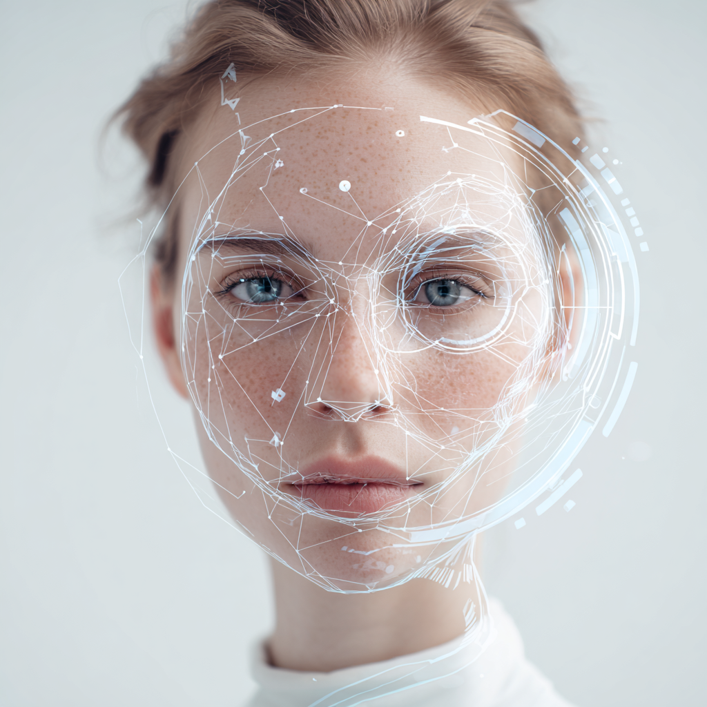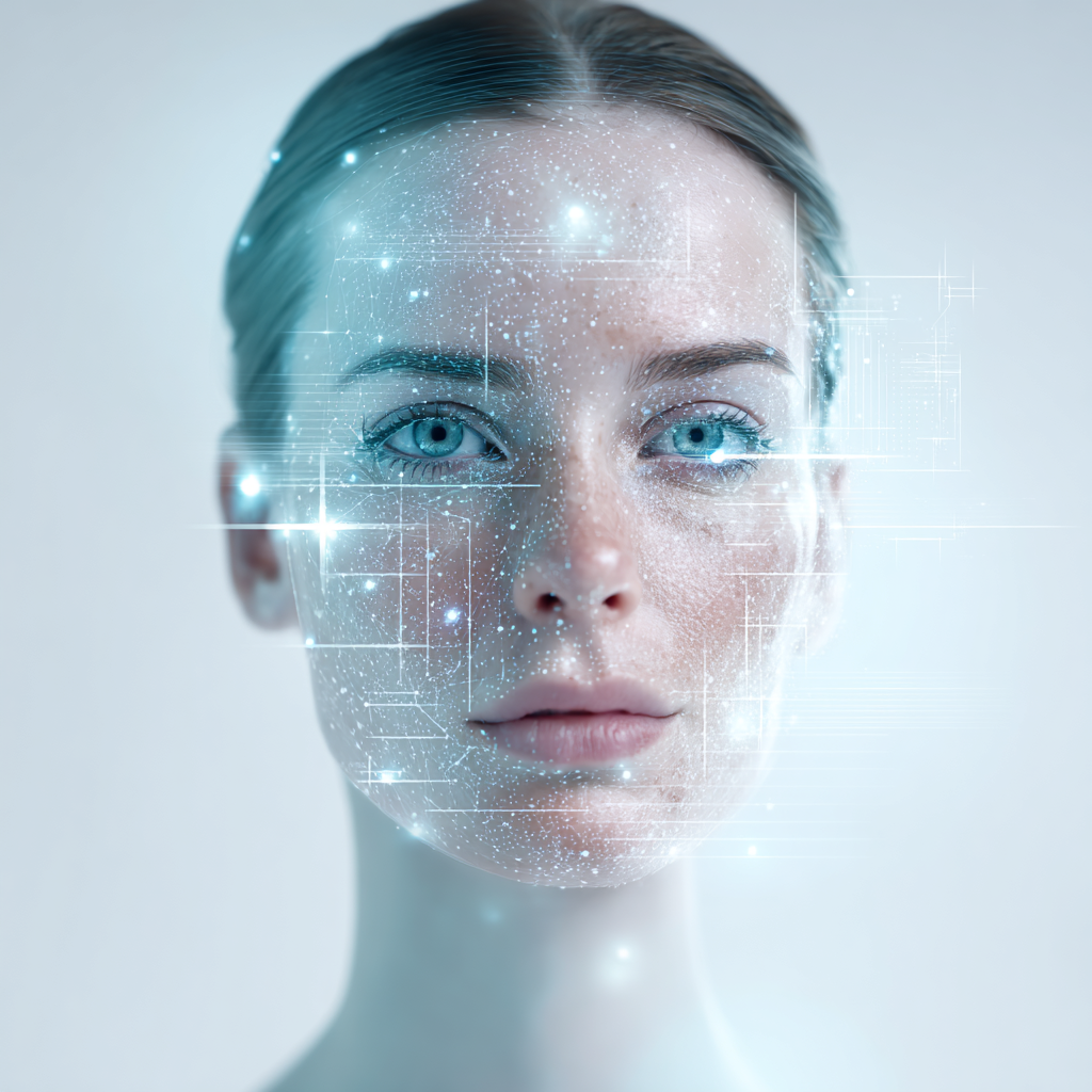 This collection gathers early experiments from my beauty–tech era: portraits where skin becomes interface, where emotion is traced like a circuit diagram, and where identity flickers between organic warmth and encoded design.