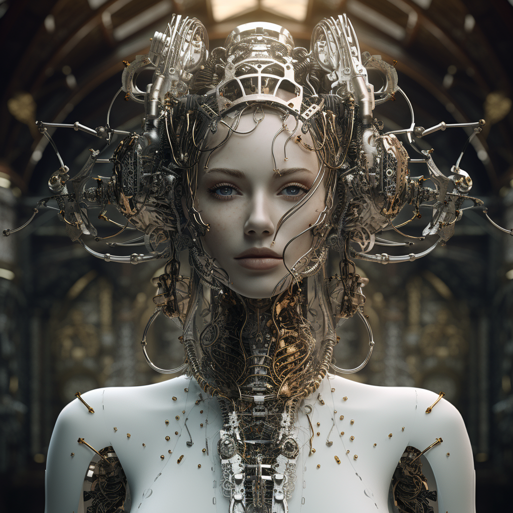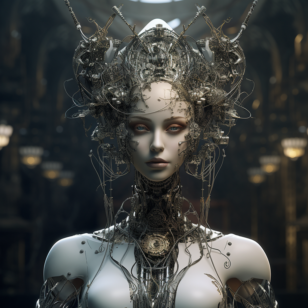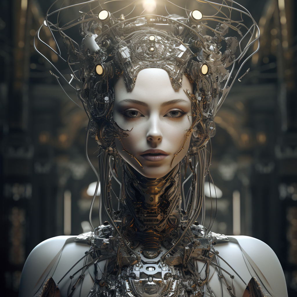 A relic of future devotion, a goddess wired for emotion she was never meant to feel.